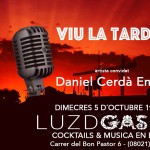 El próximo Miércoles 5 de Octubre, a las 19:30, actúo en el Luz de Gas Bar, abriendo el ciclo de música en directo «Viu la tarda en viu», patrocinado por Plymouth Gyn. Durante las próximas semanas actuarán cantautores talentosos como Justí Palat, Nico Pepi o Nano Radice. Es un honor
